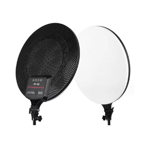 نقد و بررسی سافت لایت سرامیکی PF-45 سافت لایت PF45 یک نور ویدیویی با کیفیت و اقتصادی با قطر 45 سانتی متری با توان خروجی 100 وات است که دمای رنگی آن قابلیت تنظیم در بازه 3200 تا 5700 درجه کلوین را دارد. این نور سرامیکیدارای قابلیت تنظیم شدت نور از 0 تا 100 درصد است و توسط یک ریموت کنترل از راه دور قابل کنترل است، همچنین دارای استاندارد دقت رنگ CRI95 می باشد. به همراه یک پایه نور با حداکثر ارتفاع 210 سانتی متری